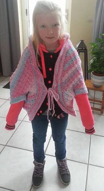 shrug gehaakt in opdracht. Ligt aan de maat hoeveel materiaal ik nodig heb. Deze kost 28,50 zoals hier gehaakt er zitten 9 bolletjes haakkatoen in