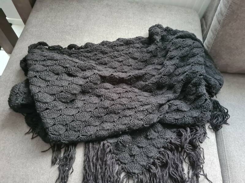 Deze omslagdoek was kapot, er zat een behoorlijk gat in. De klant vroeg of ik dit kon repareren dat is mij gelukkig gelukt naar goede tevredenheid van de klant. Er zat voor haar emotionele herinneringen aan.