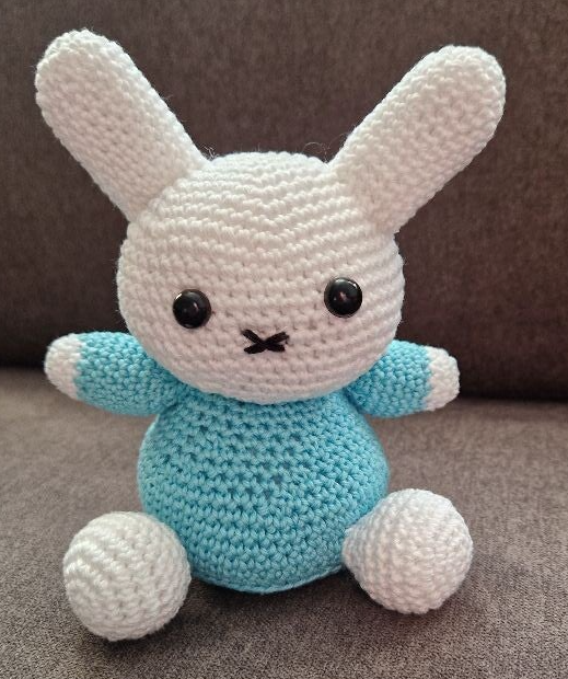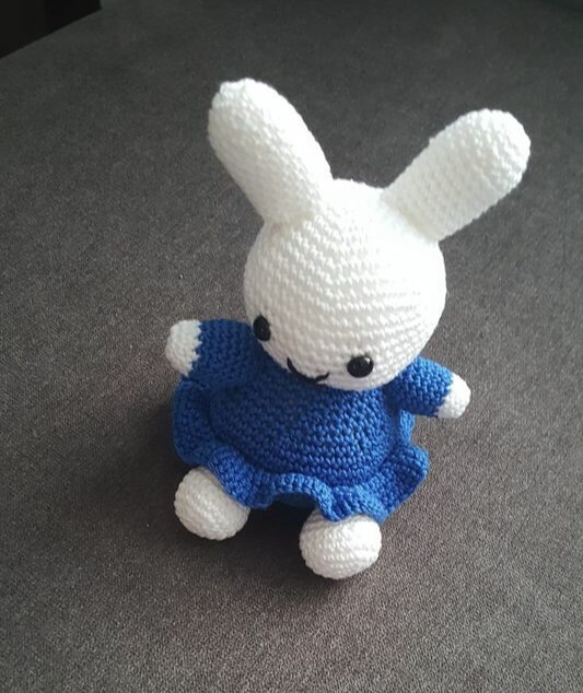 een nieuwe blauwe Koko konijn gemaakt zonder rokje