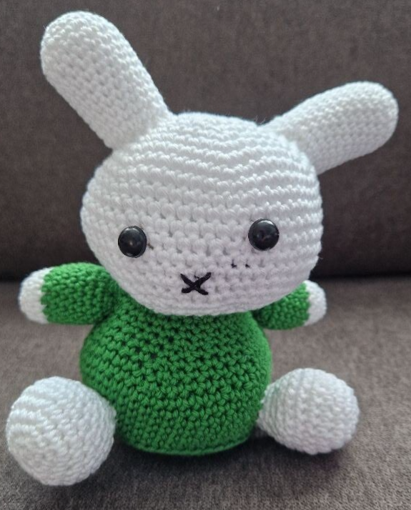 een nieuwe groeneKoko konijn met rokje gemaakt