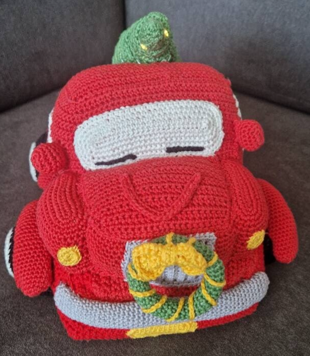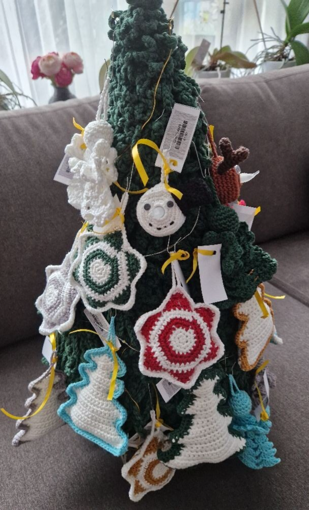 De kerstboom groter die heb ik gemaakt voor op mijn markten voor de kerstperiode. Ik hang hier al mijn gehaakte kerstfiguurtjes in.