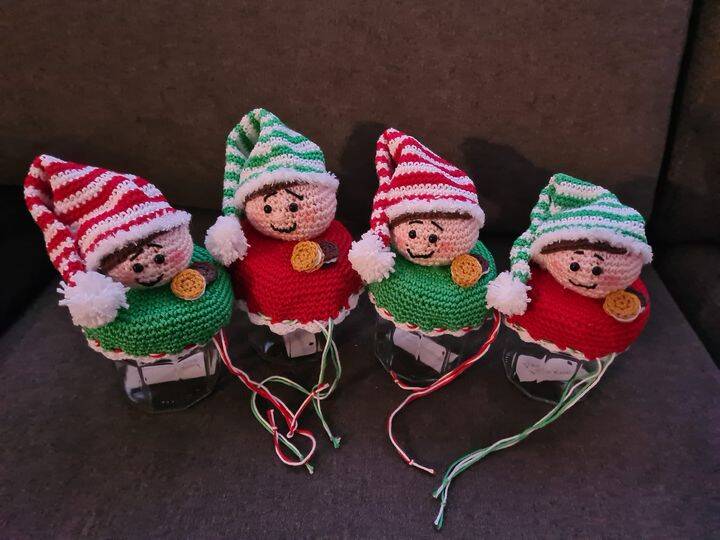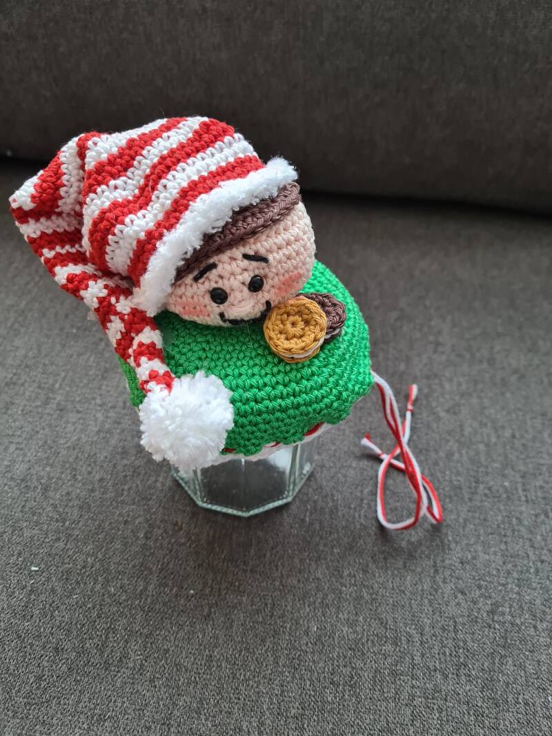 kerstman gehaakt op een glazen potje met kerstkoekjes 8,50