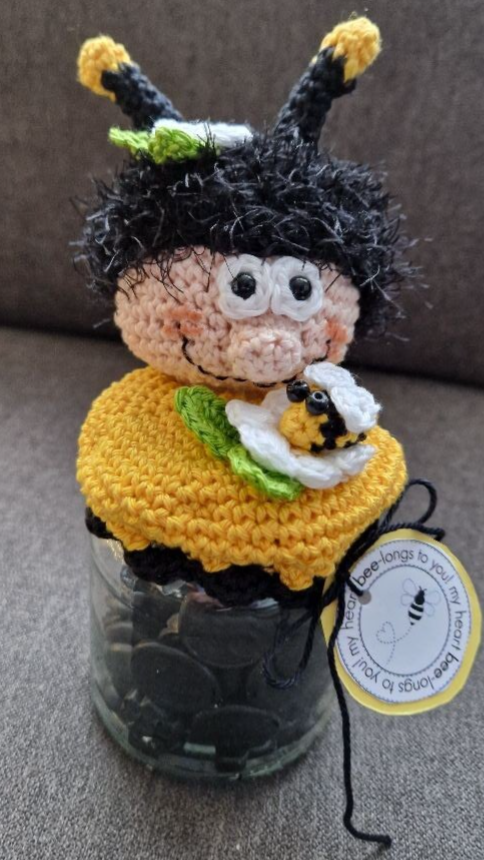 de potjes die ik maak zijn meestal van Bizzy Bee Klaske en worden altijd leeg geleverd. Op verzoek kan ik ze ook vullen met wat u wilt, maar ik denk dat uw fantasie wel groot genoeg ze zelf te vullen.