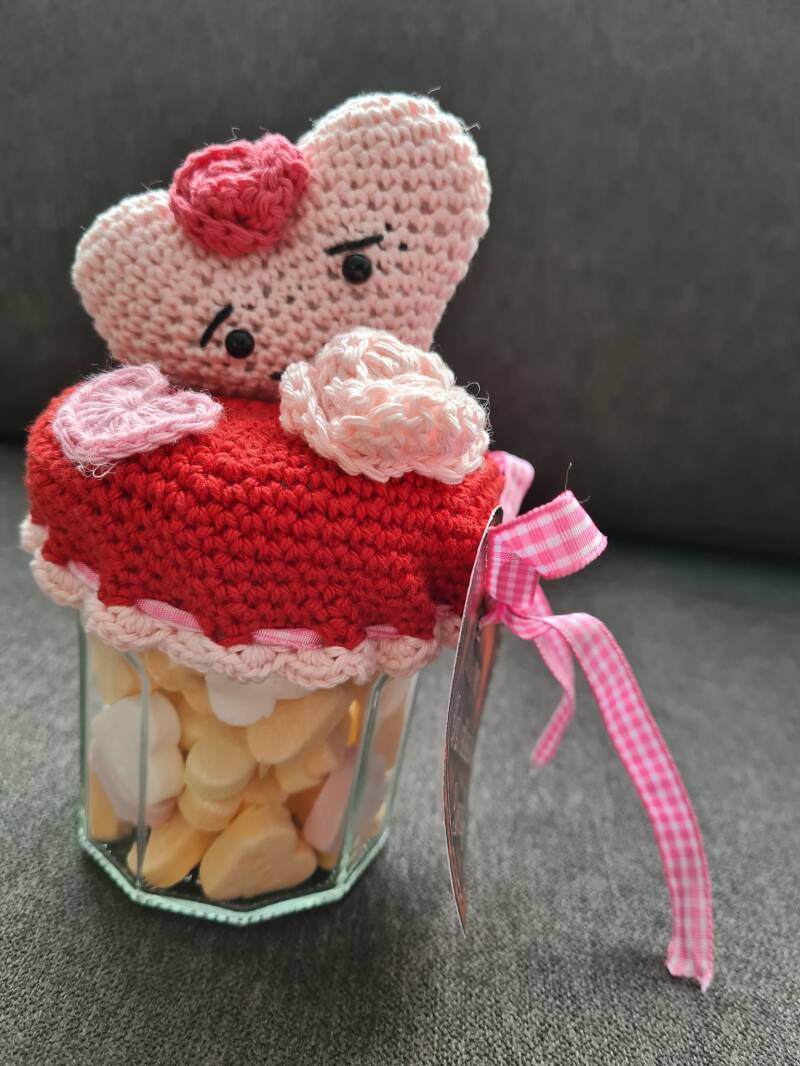 valentijnspotje gehaakt met metalen hart en een led waxinelichtje 3,25