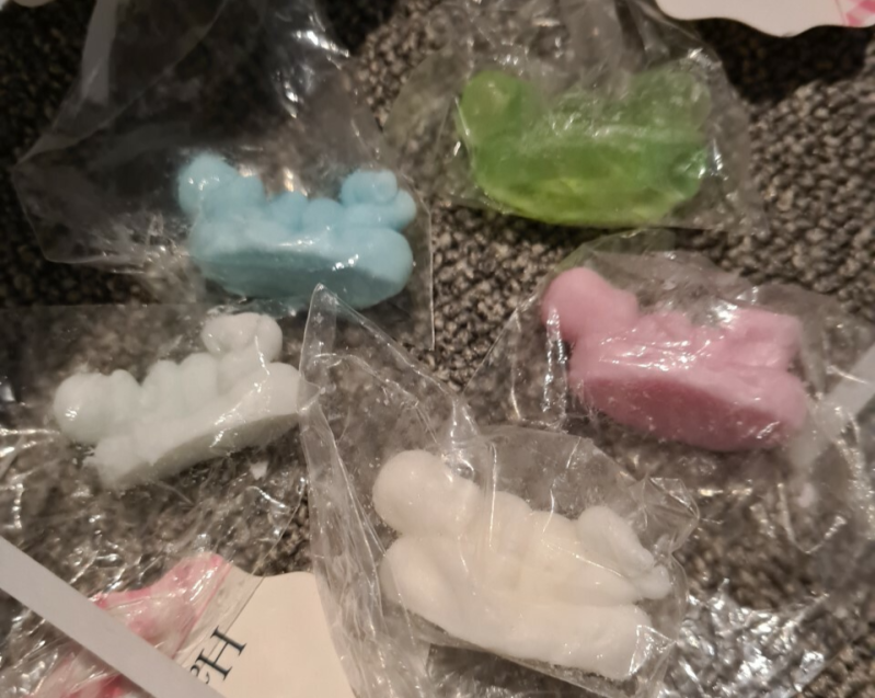 De zeeptabletten hebben allen een andere geur en kleur en zijn te koop voor 5,00